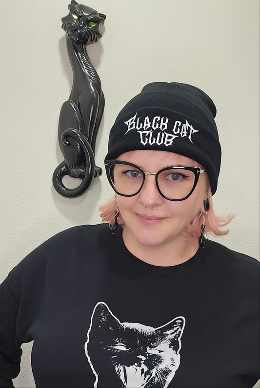 Black Cat Club Hissing Kitten Logo Enamel Keychain 2.5"