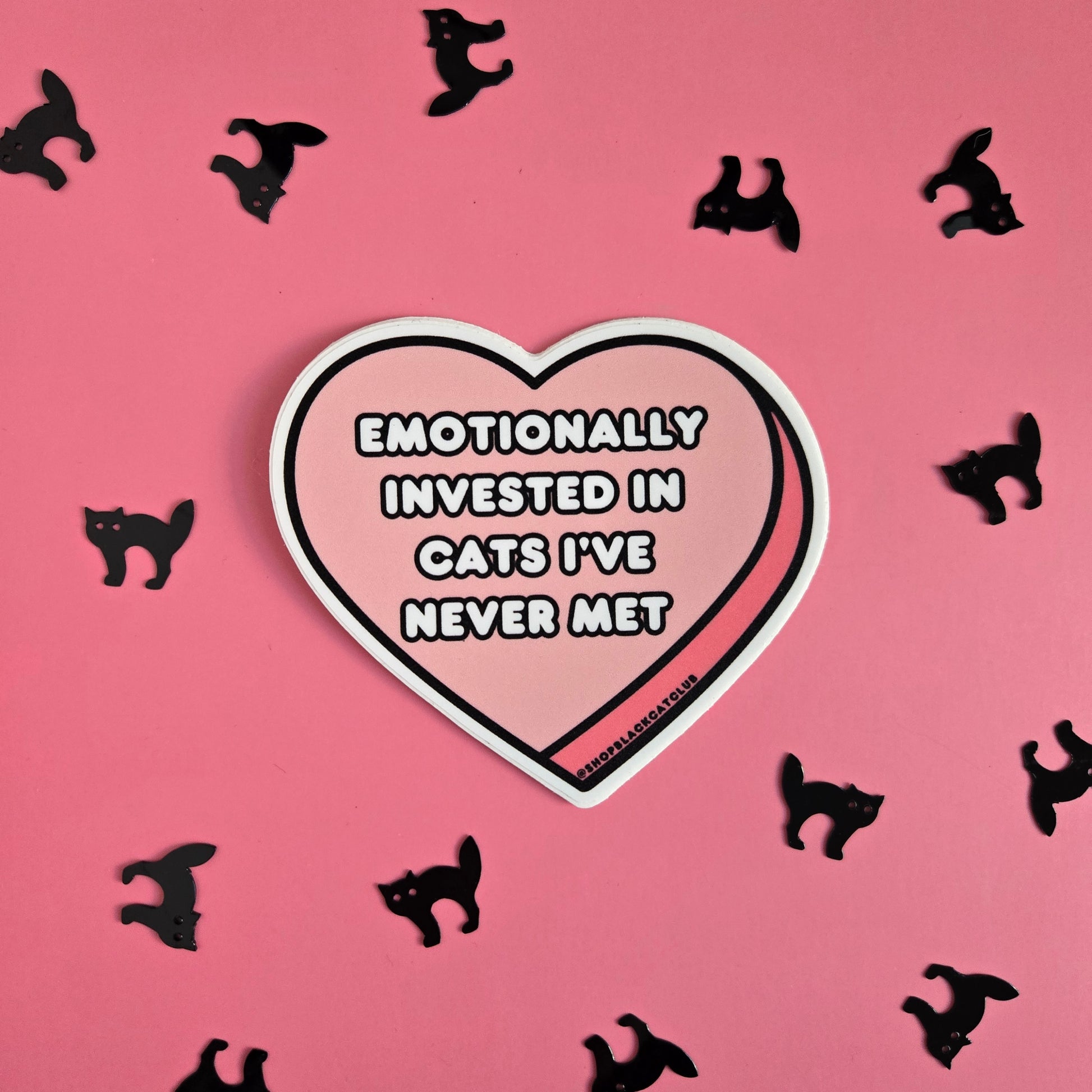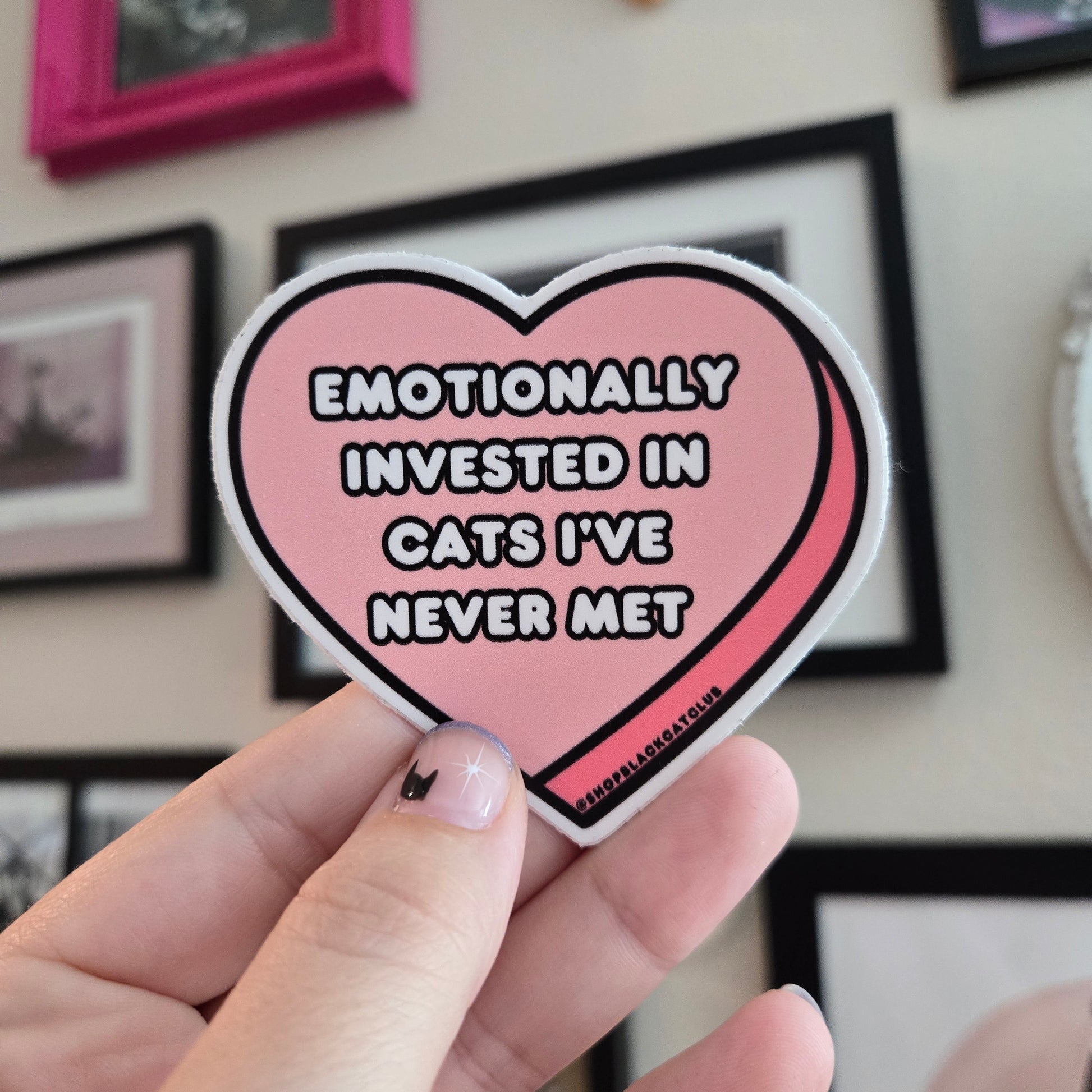 Emotionally Invested in Cats I've Never Met 3" Pink Heart Sticker! I know I'm not alone here!!!